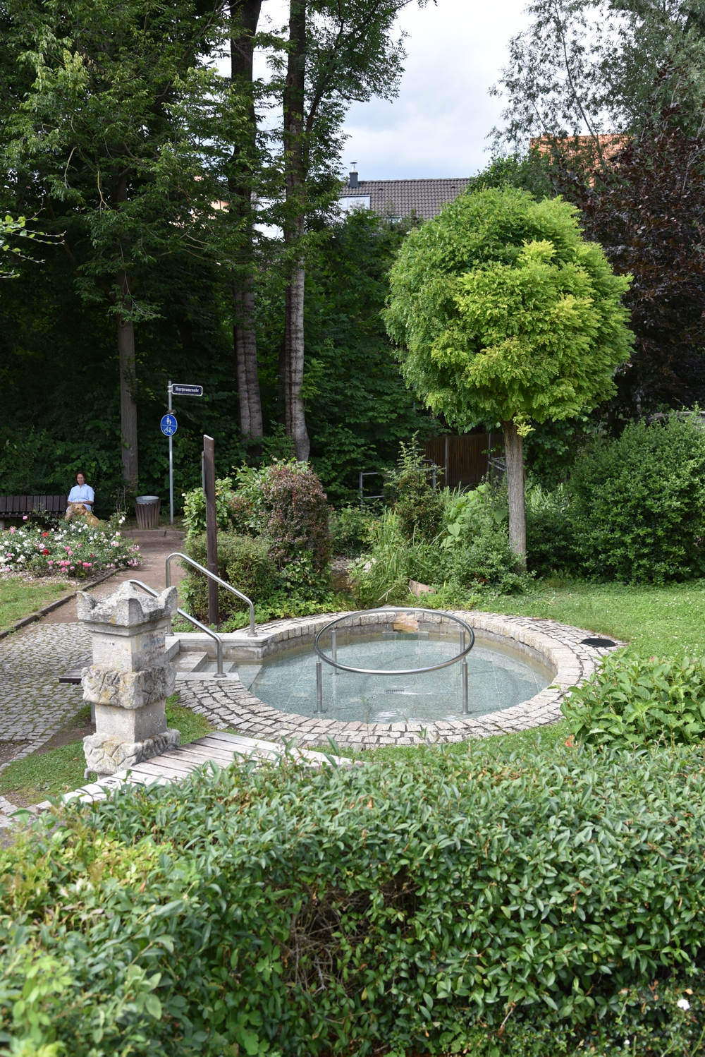 Etwas älter ist die Anlage auf dem Badeplatz im Zentrum Bad Bibras. 1996 wurde hier ein rundes Kneipptretbecken errichtet. Das Wasser ist wegen seines hohen Kohlensäure- und Eisenoxydgehalts rötlich-braun gefärbt und stammt aus der ältesten Heilquelle des Ortes – dem erstmals 1686 gefassten Gesundbrunnen. Die Inschrift des seit 1779 bestehenden Badehaussteins als Eingangsportal zeugt von der Nutzung als Modebad der Herzöge Sachsen-Weißenfels.